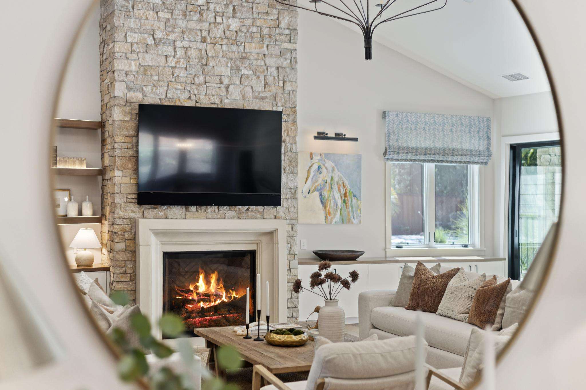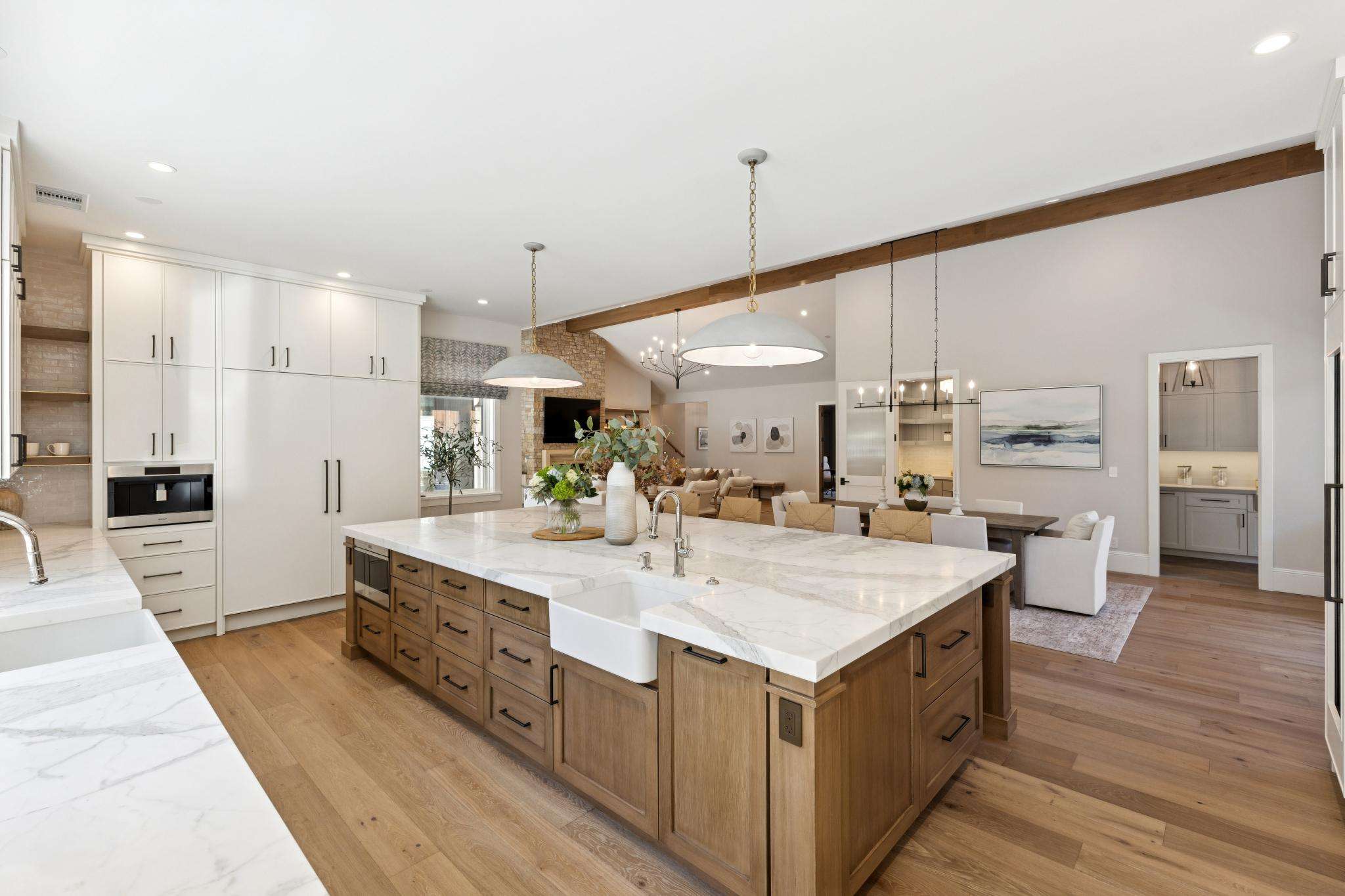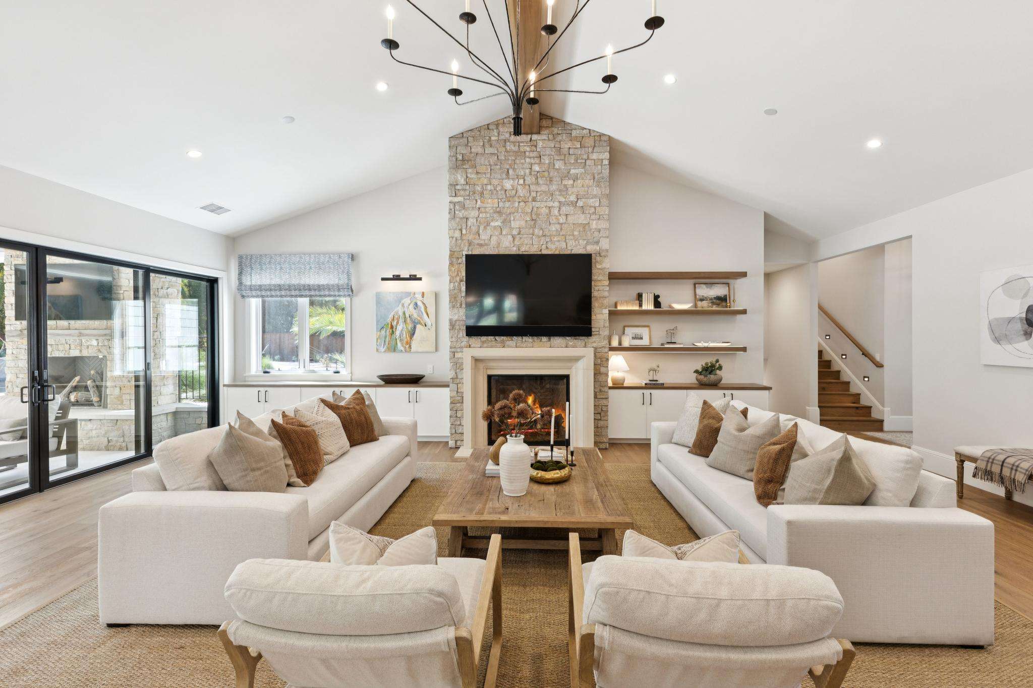 Experience this meticulously renovated masterpiece in Alamo's coveted Roundhill community. Designed by William Wood, this home redefines modern luxury with masterful design & impeccable high-end finishes. The heart of the home is a spectacular great room with soaring ceilings, wide-plank white oak flooring, & a custom stone fireplace with direct access to the backyard. It seamlessly integrates a culinary dream kitchen, anchored by an expansive Calcutta marble island & equipped with a 60in Wolf Range, Sub-Zero refrigerator, built-in Wolf coffee system, wine refrigerator, & custom solid wood cabinetry. The primary suite is a private sanctuary w/fireplace, an oversized "showcase" walk-in closet, & a spacious marble ensuite bath w/heated floors. Three of four guest bedrooms are also ensuite. A well-appointed office w/custom built-ins provides the perfect workspace. The home features top-of-the-line Andersen E-Series windows & doors throughout. Effortless living is achieved via a state-of-the-art smart home w/Josh.ai voice control, Lutron lighting, & automated shades. Relish in the resort-like yard, featuring a covered pavilion w/a fireplace & heaters, an outdoor kitchen, a PebbleTec pool w/baja shelf, a putting green, & a sport court. A rare opportunity to own a luxurious turnkey estate in a premier location.